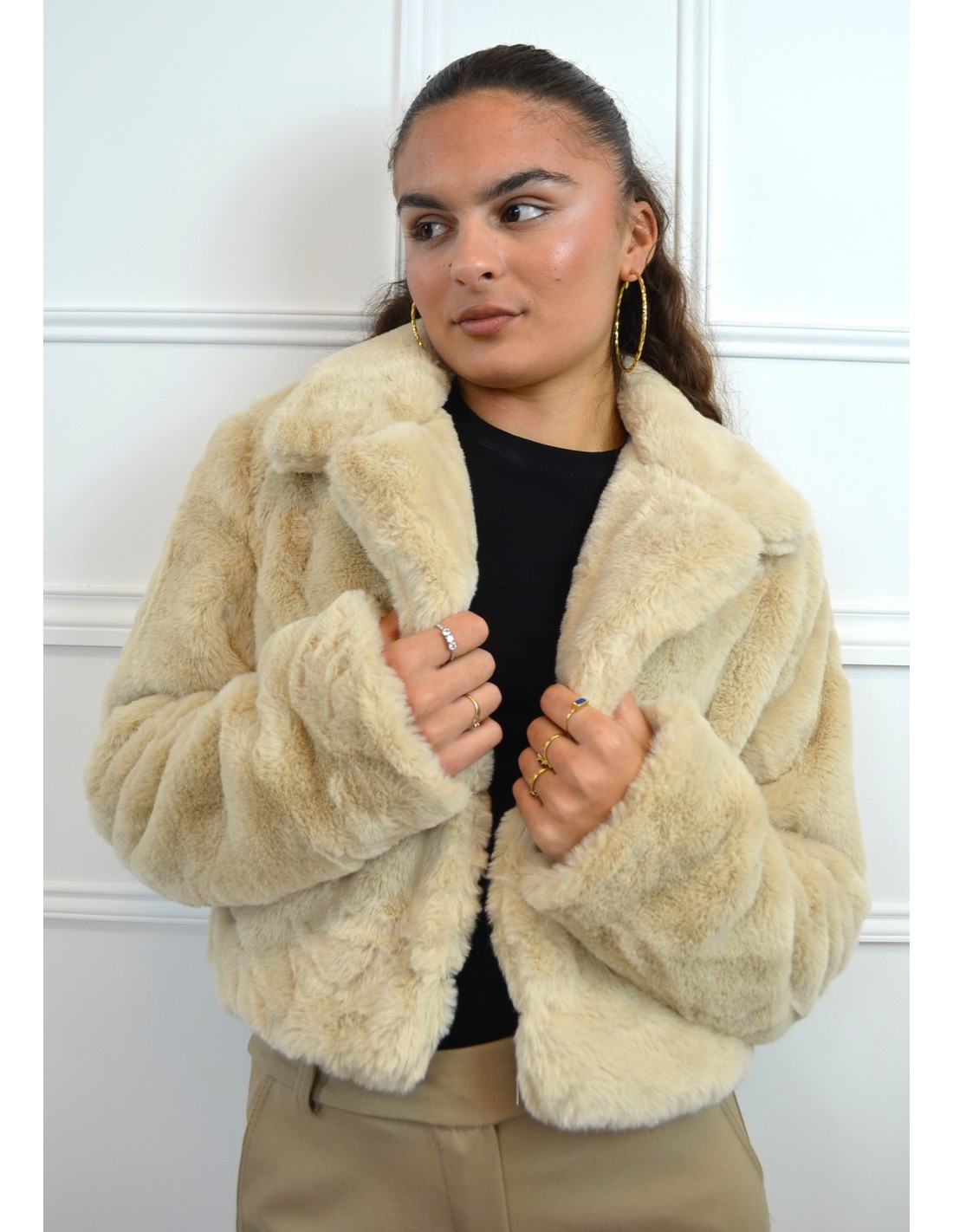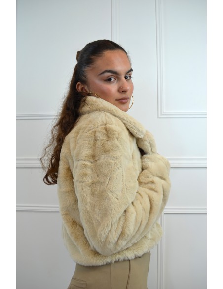 Manteau court en fausse fourrure beige - femme