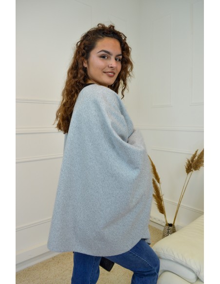 Poncho gris avec cape à nouer - femme