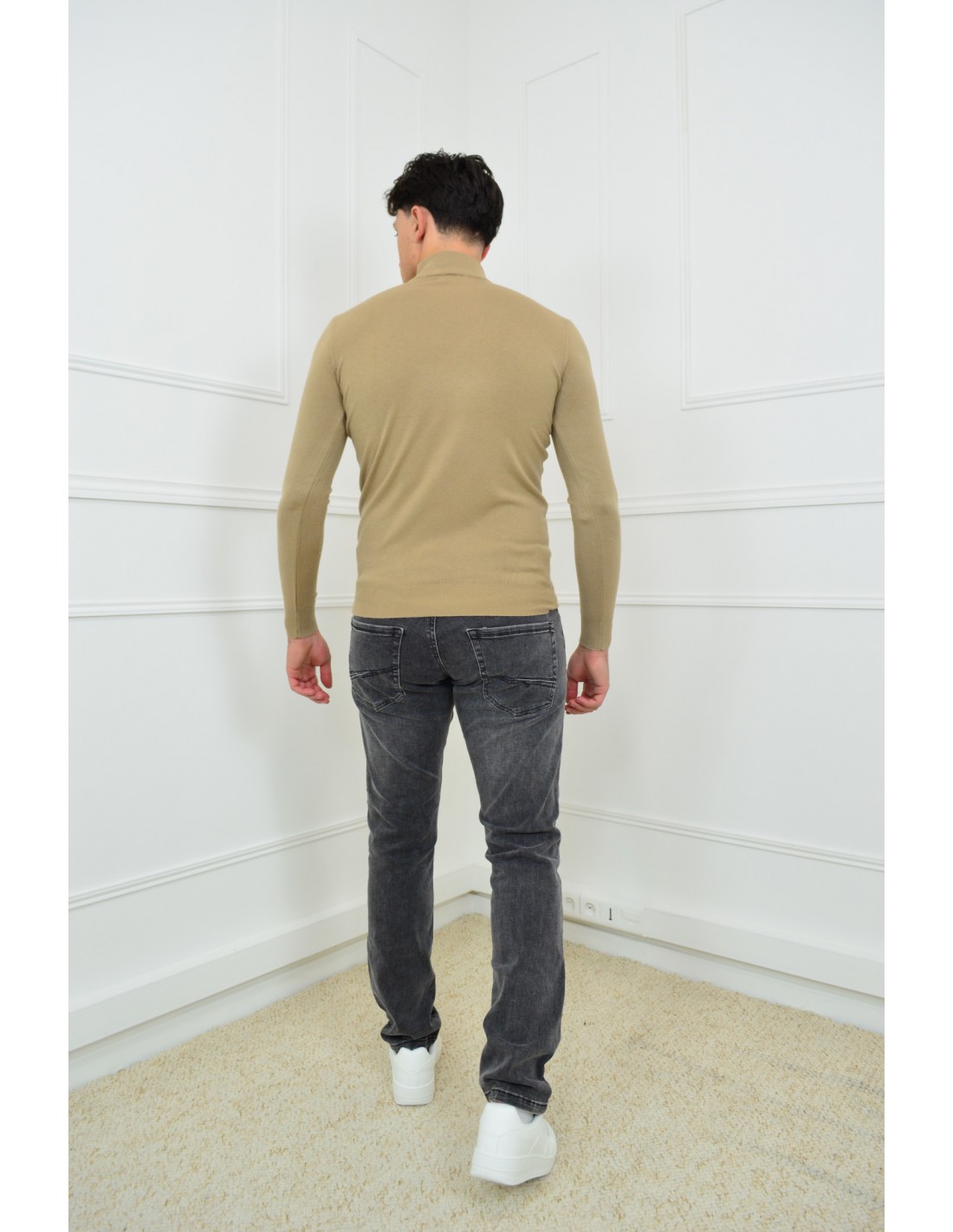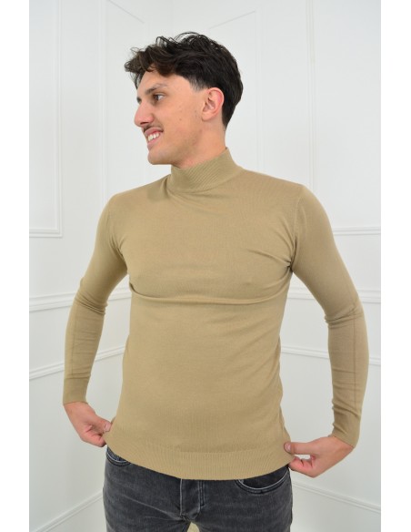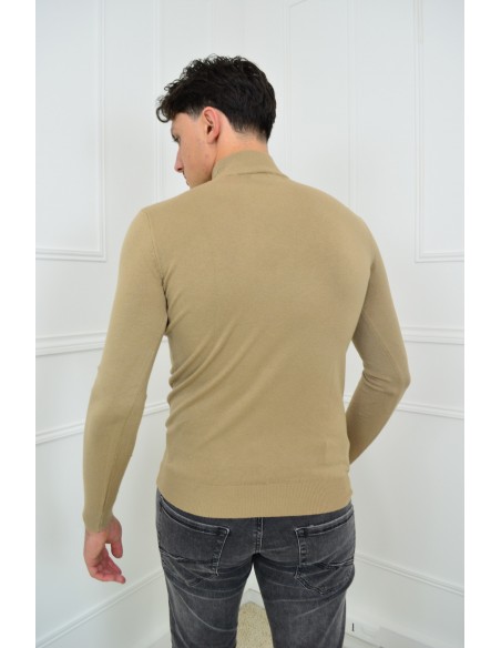 Pull beige col haut - homme