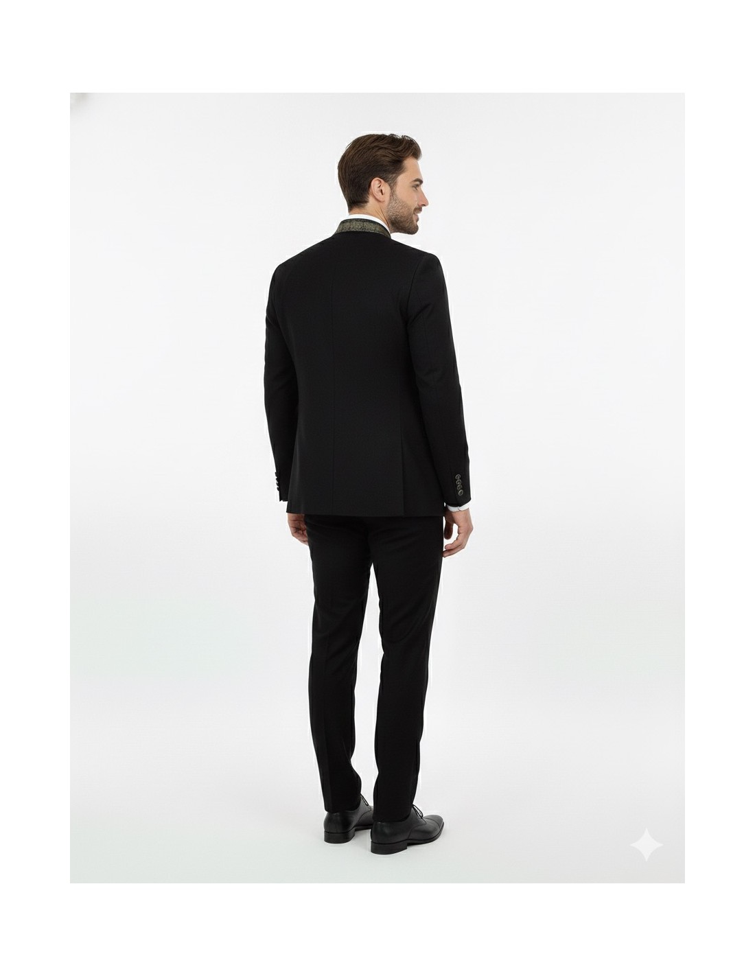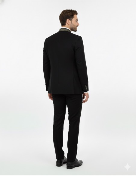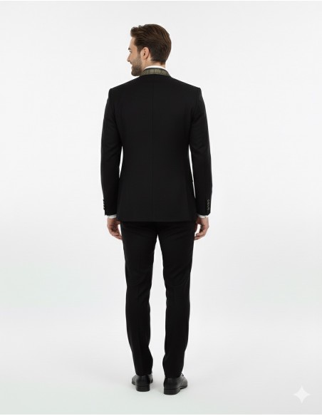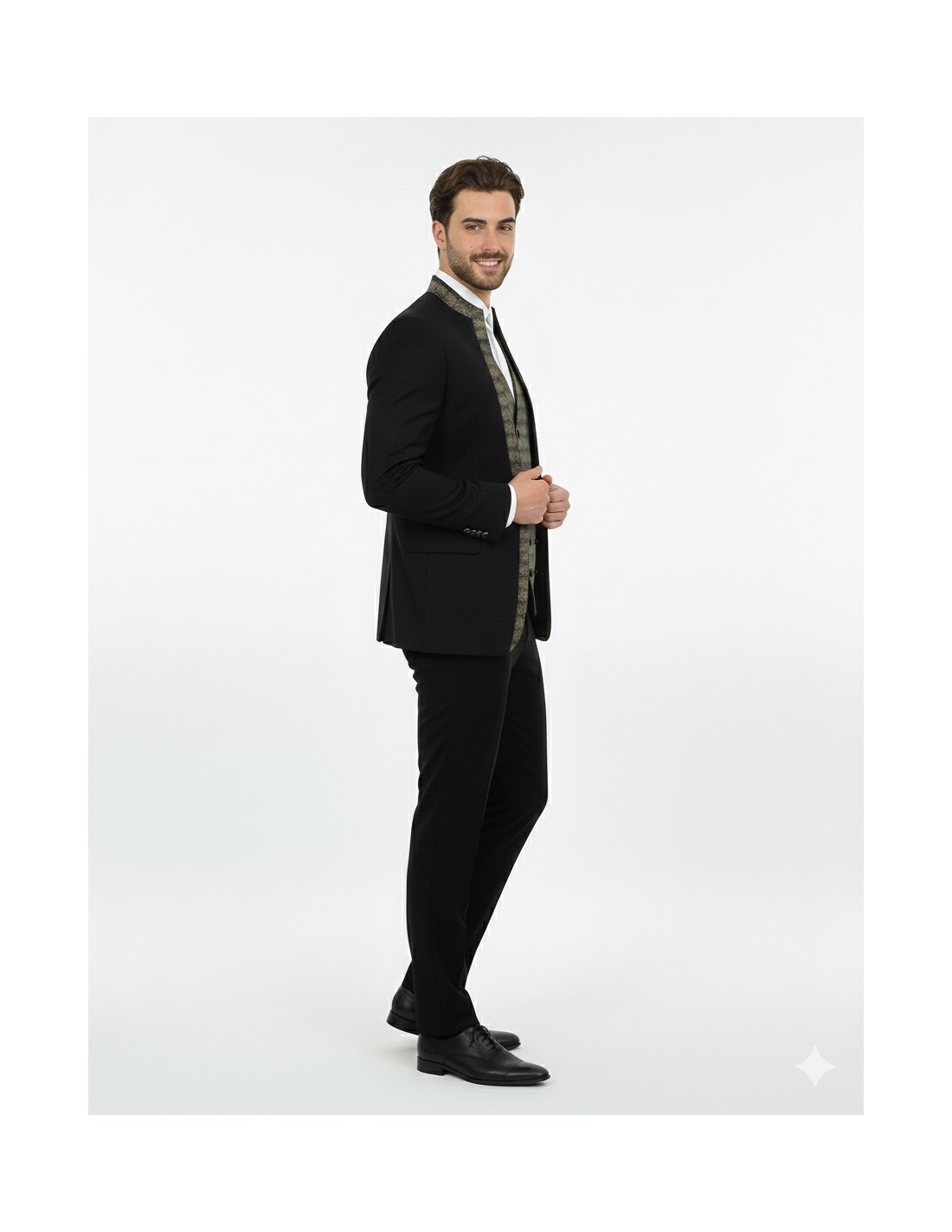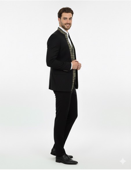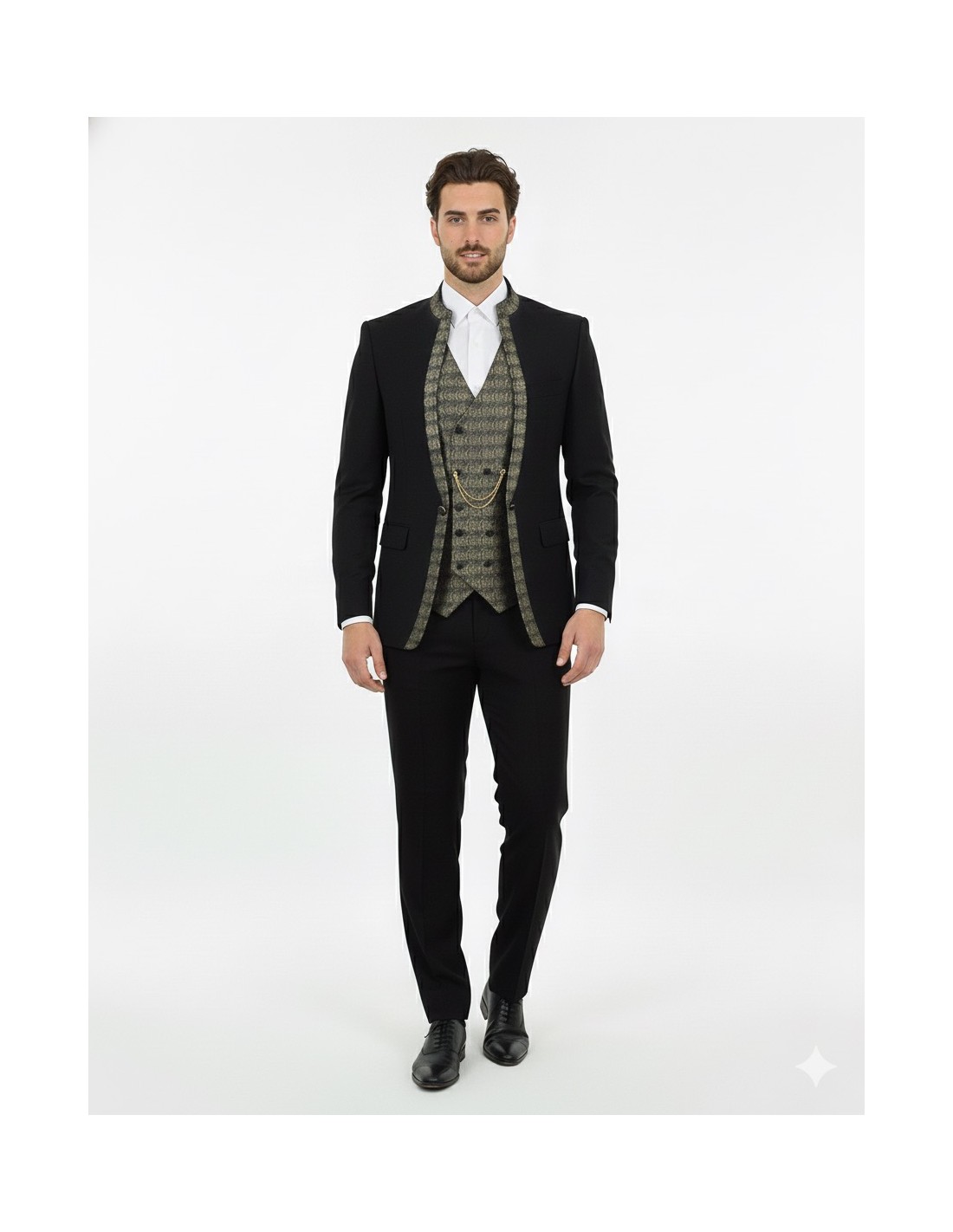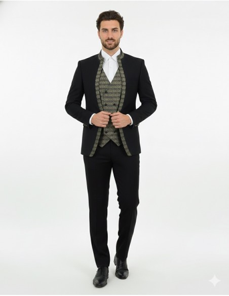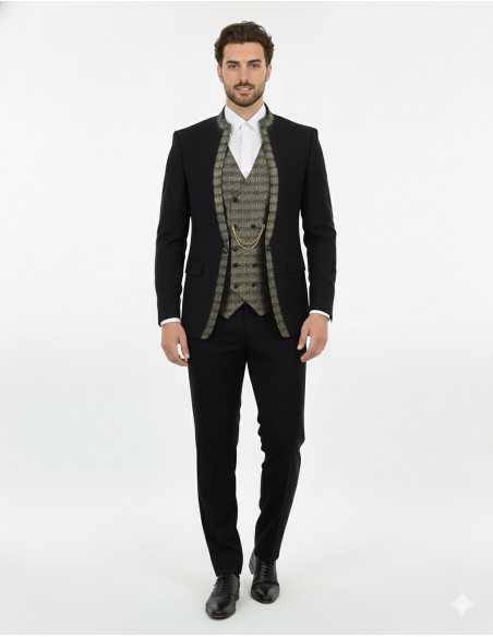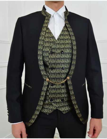 Ensemble costume 3 pièces noir avec détails dorés – homme