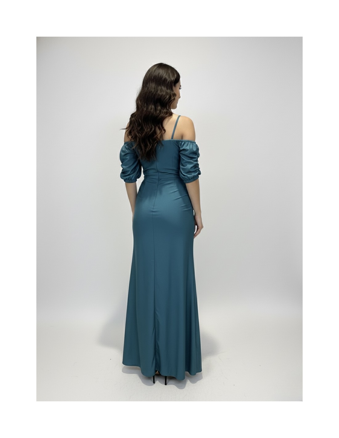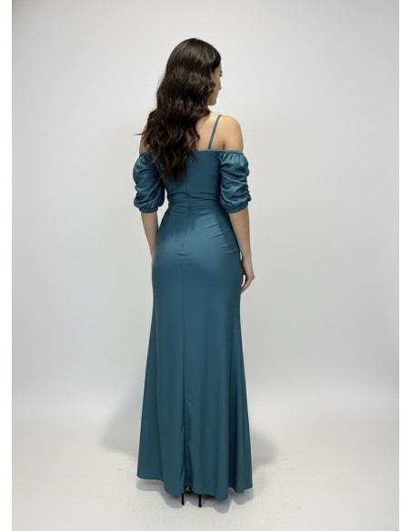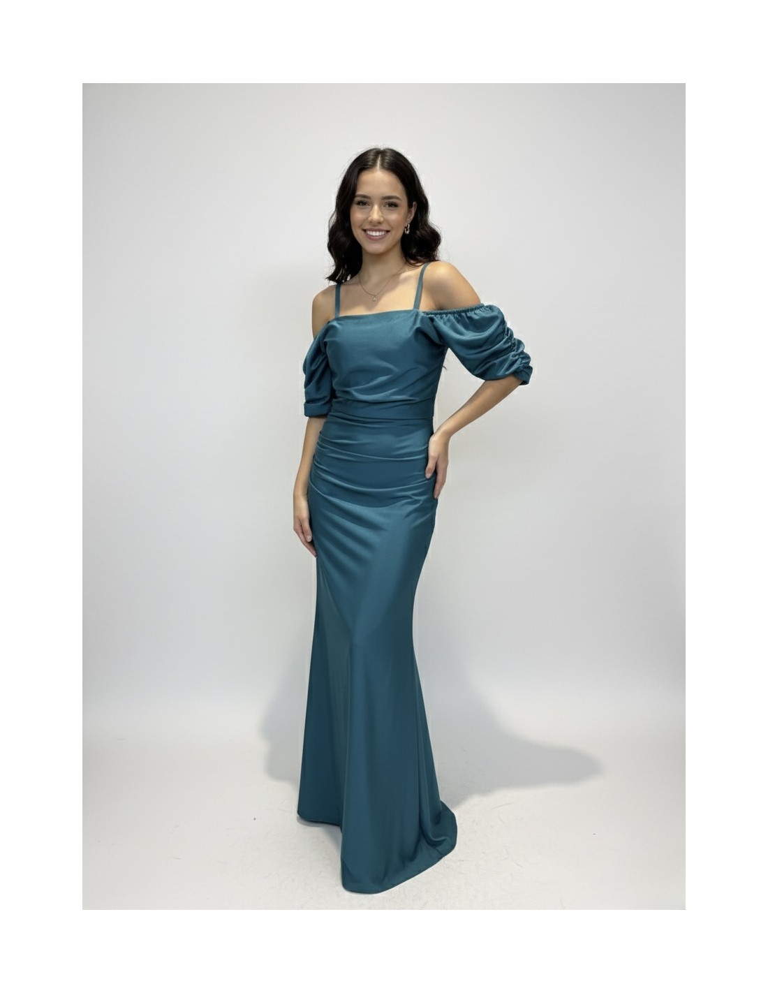 Cette robe longue à bretelles séduit par son allure romantique et raffinée. Les manches courtes bouffantes apportent une touche de volume et de féminité, tandis que les bretelles fines équilibrent la silhouette avec élégance.
