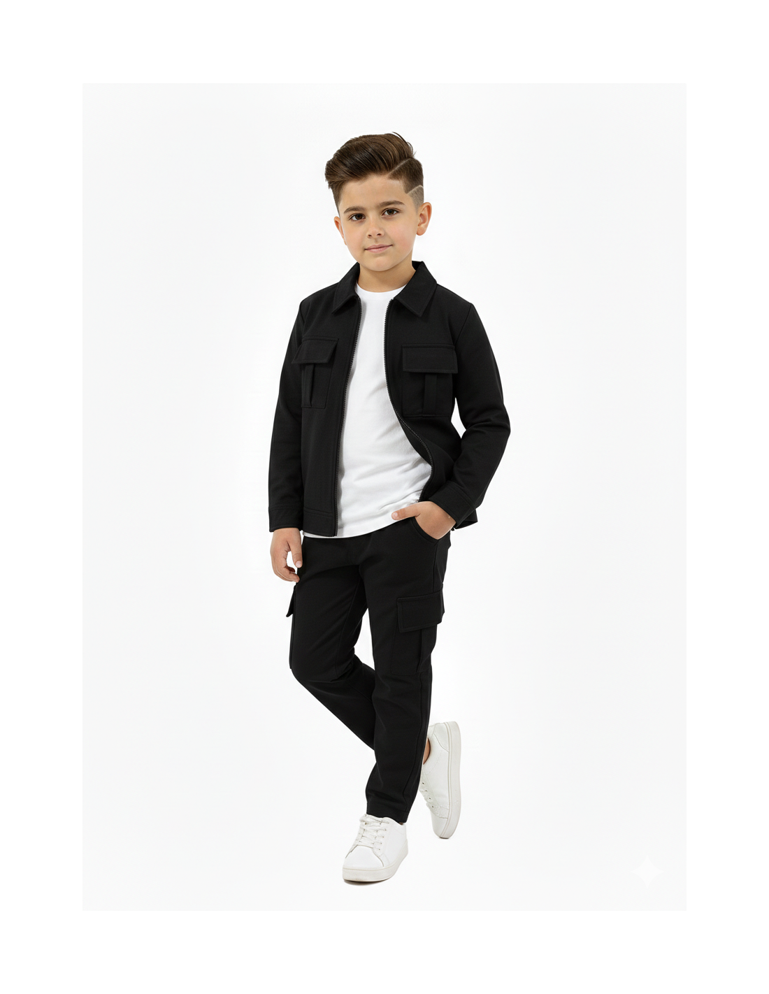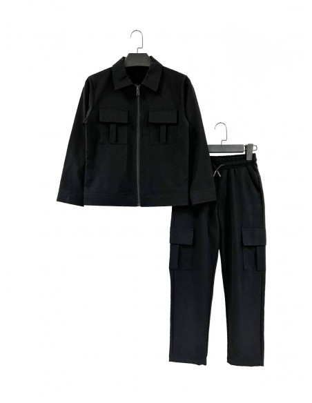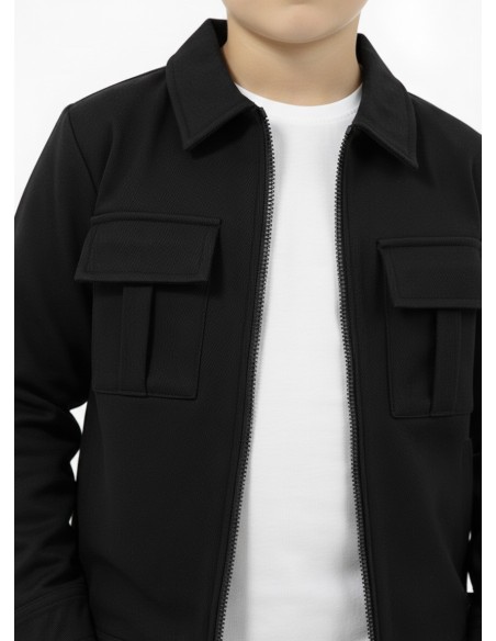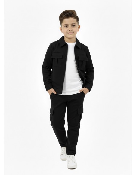 Optez pour un look sportif et tendance avec cet ensemble jogging noir pour garçon.