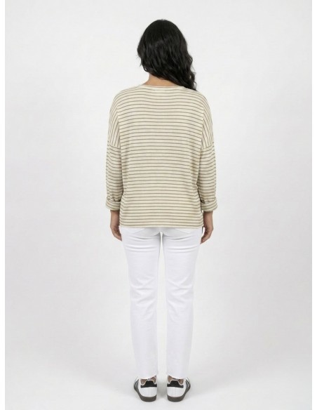 Laissez-vous séduire par le charme intemporel de notre pull rayé "J'adore". Sa maille légère et sa coupe fluide en font la pièce idéale pour un look quotidien à la fois confortable et sophistiqué. On craque pour son message brodé tout en finesse !
