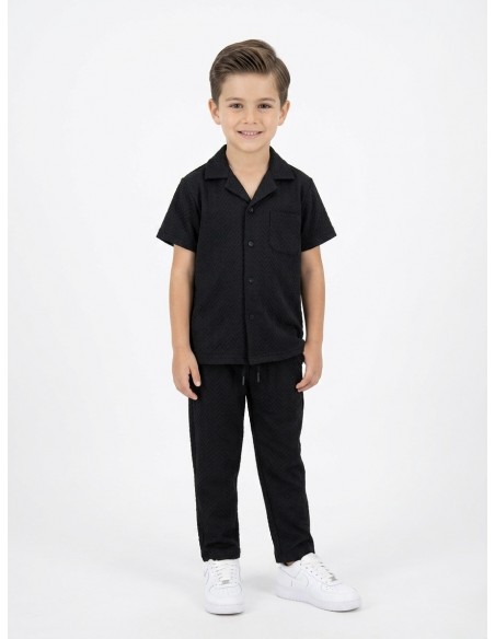 ENSEMBLE TEXTURÉ NOIR CHEMISE + PANTALON - GARÇON