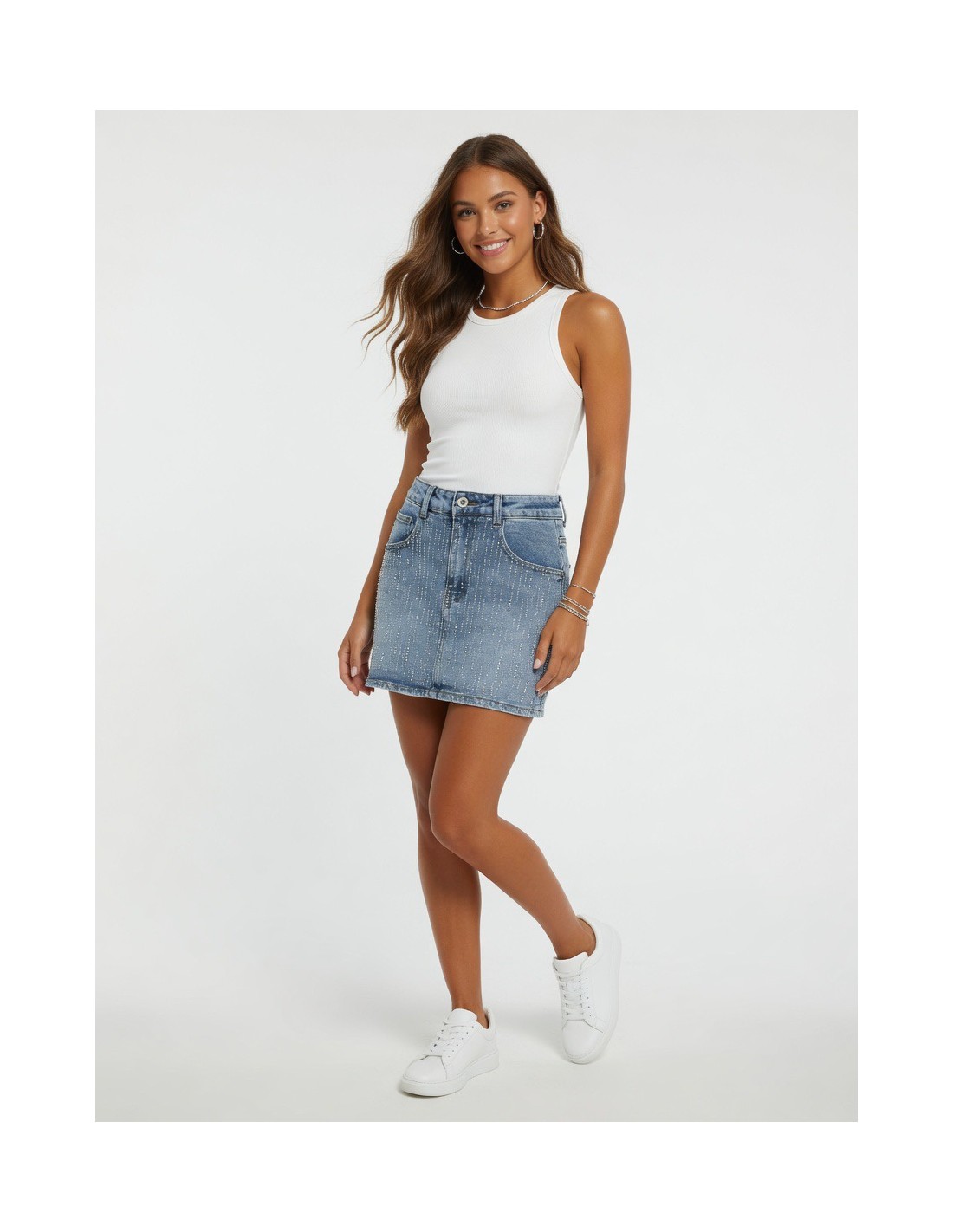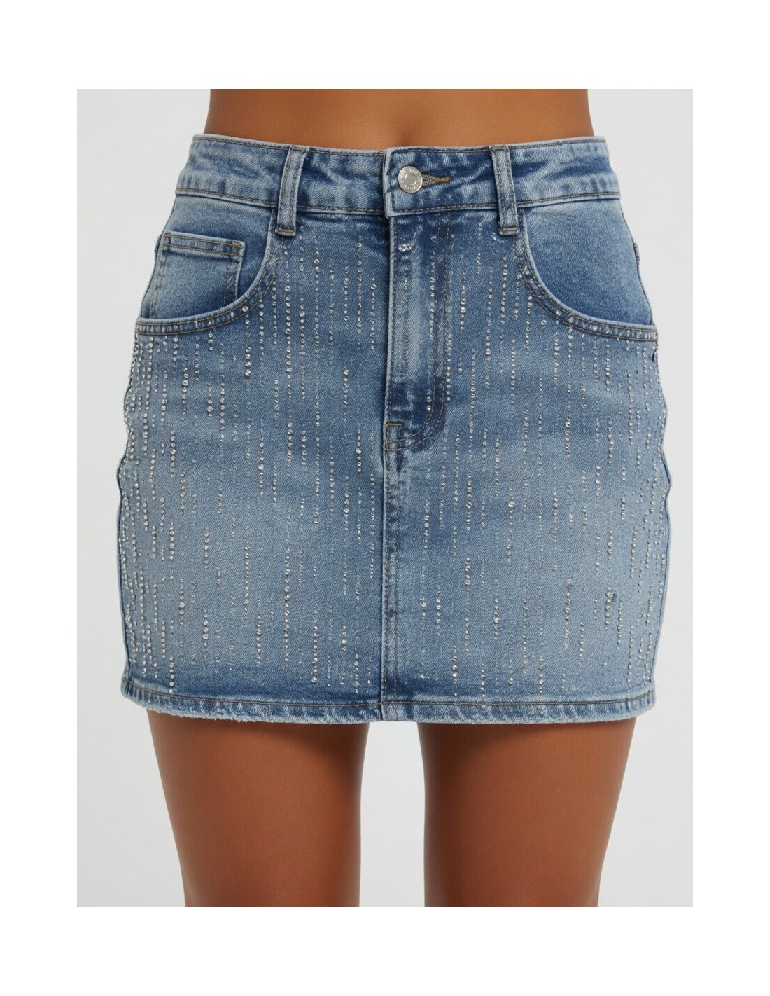 JUPE COURTE EN JEAN DÉTAILS STRASS - FEMME
