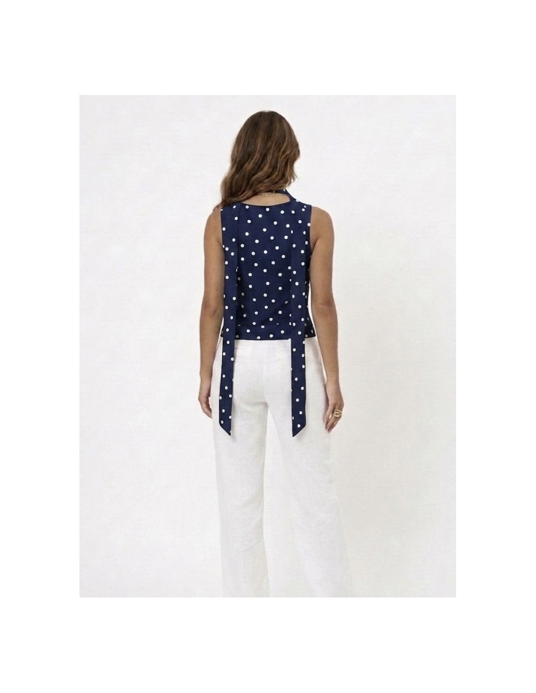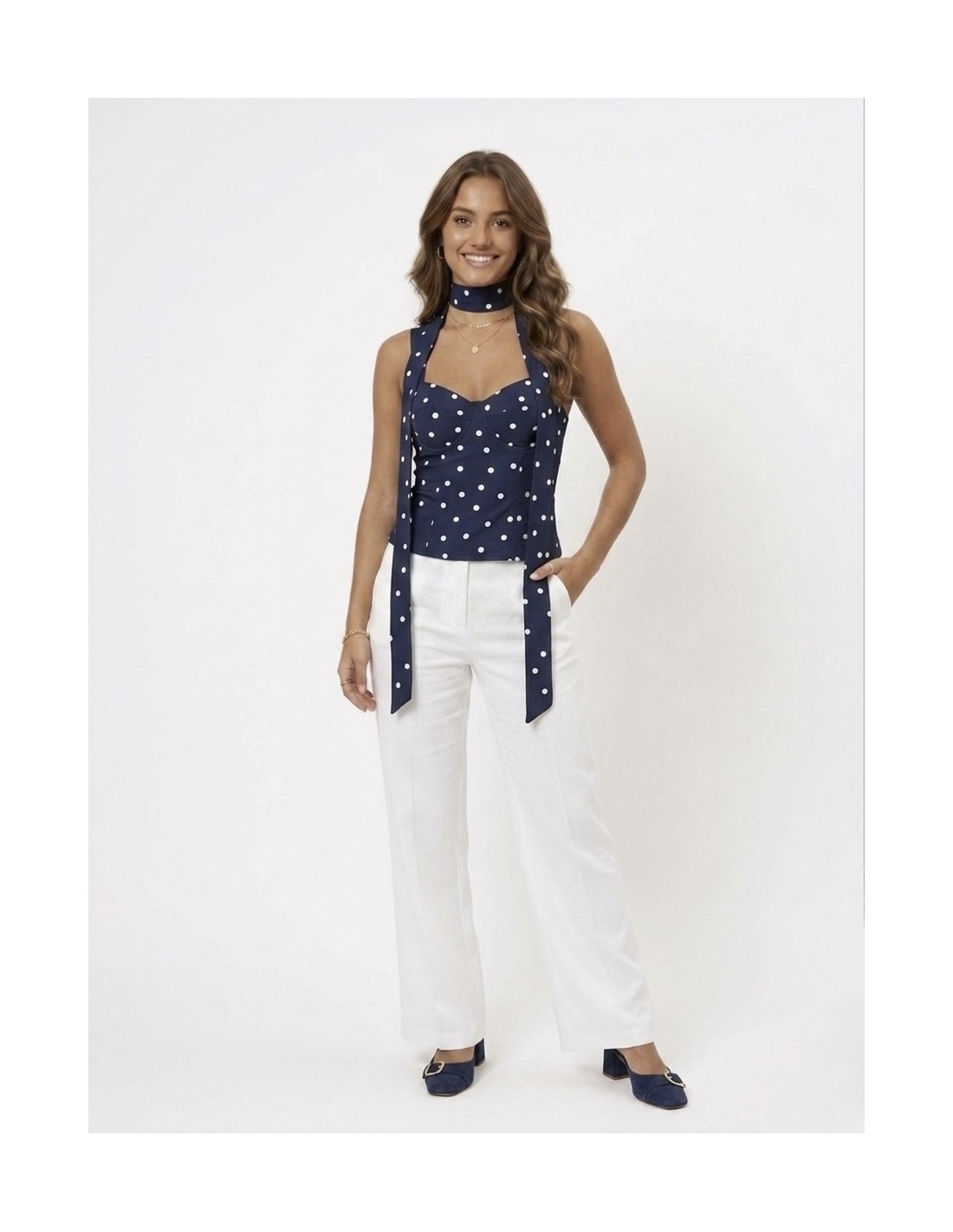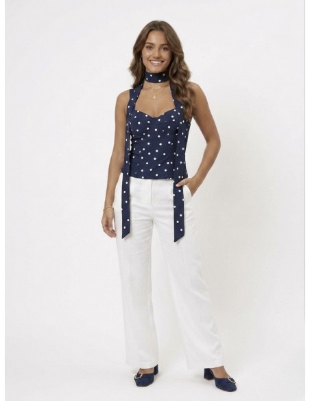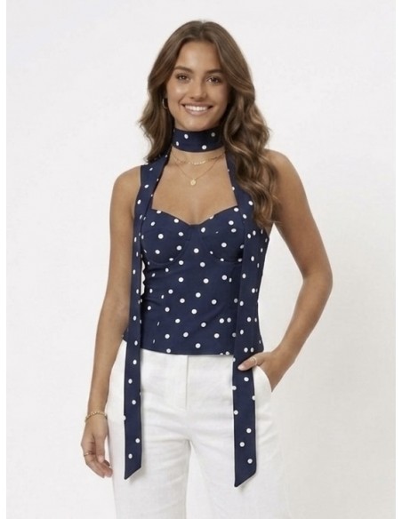 TOP BUSTIER BLEU MARINE A POIS & FOULARD INTÉGRÉE - FEMME