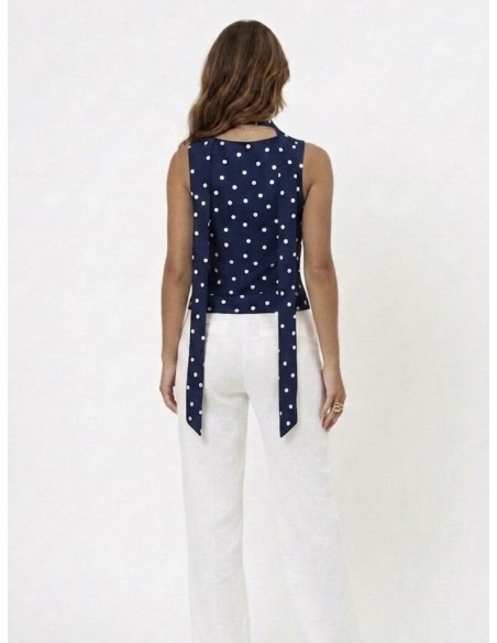 TOP BUSTIER BLEU MARINE A POIS &...