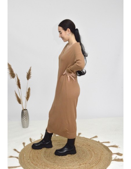 Cette robe longue pour femme séduit par son élégante coupe, offrant un look à la fois frais et sophistiqué. Son encolure en V met en valeur le décolleté, tandis que la ceinture à nouer souligne délicatement la taille pour une silhouette féminine. Les manches courtes et la fluidité du tissu assurent un confort optimal et une grande liberté de mouvement.