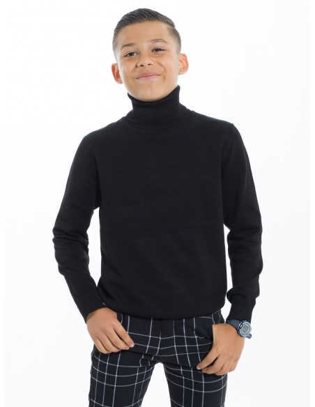 PULL COLROULÉ MANCHE LONGUE NOIR- GARÇON DE 8 À 14 ANS